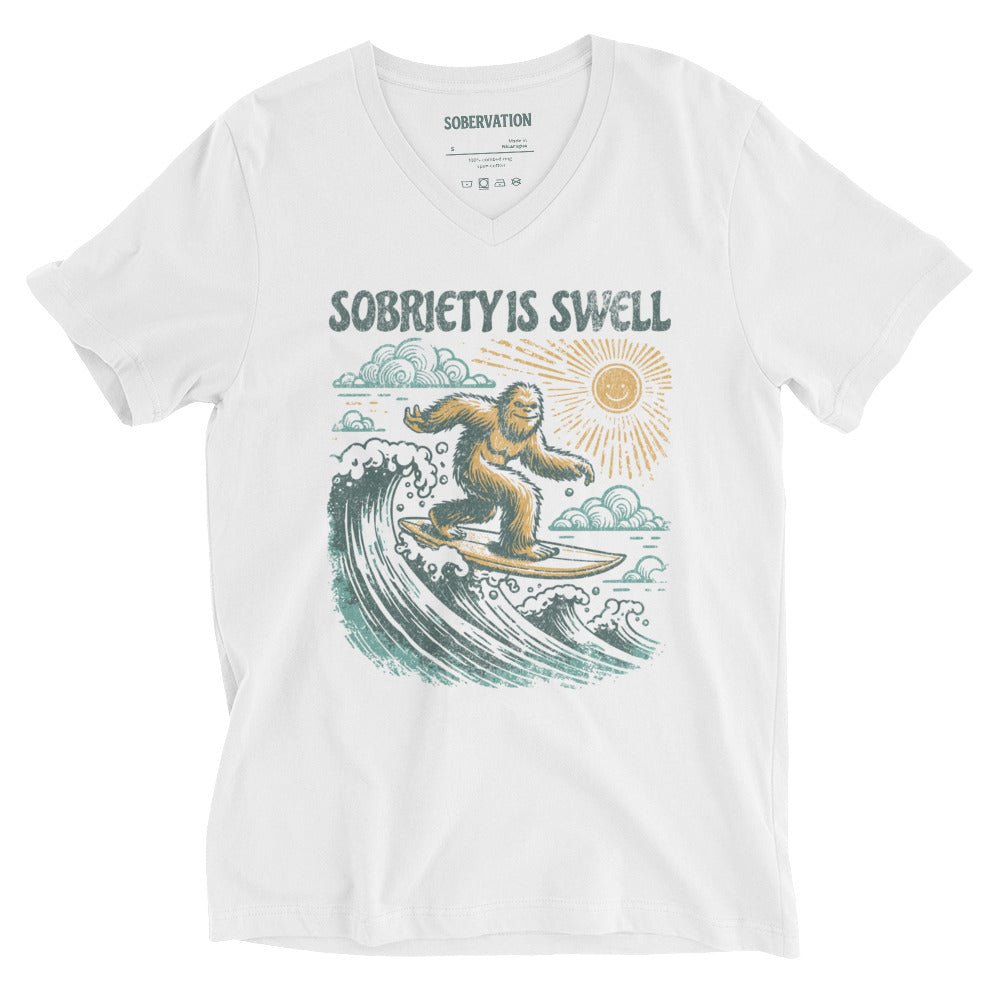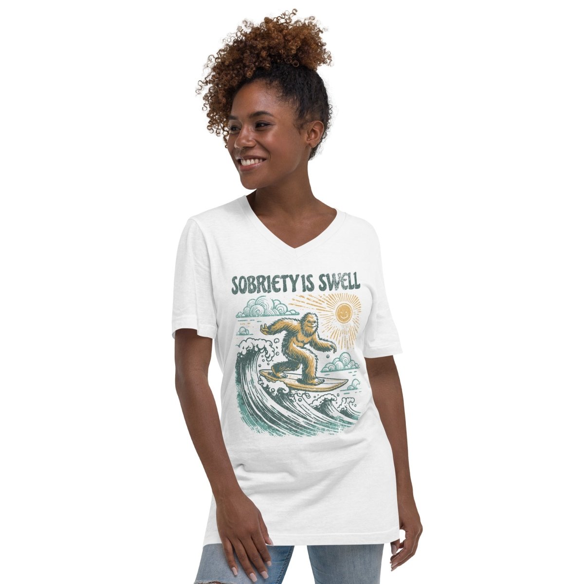 Sobriety Is Swell V-Neck Tee – Ride the Wave of Recovery