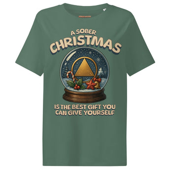 Perfectly fitted and eco-conscious, this tee is ideal for gifting to yourself or a sober woman in your life. It blends holiday spirit with the strength of recovery in one wearable message.