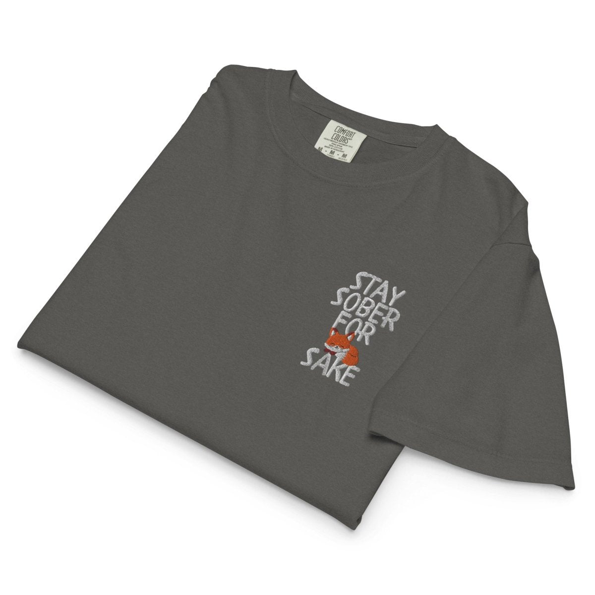 The boxy silhouette redefines casual comfort. This women's fit features a relaxed, mid-length cut that skims rather than clings, creating effortless styling versatility. The "Stay Sober For Fox Sake" embroidery sits on the left chest where it adds subtle detail without disrupting the clean lines of the boxy shape. This placement feels intentional and refined, elevating the tee beyond basic while maintaining its laid-back appeal.
