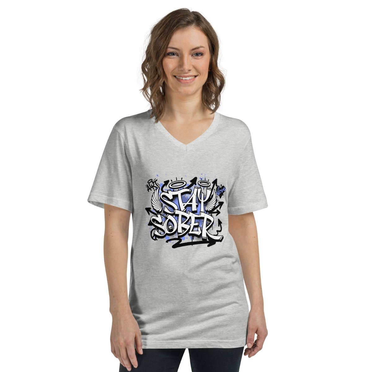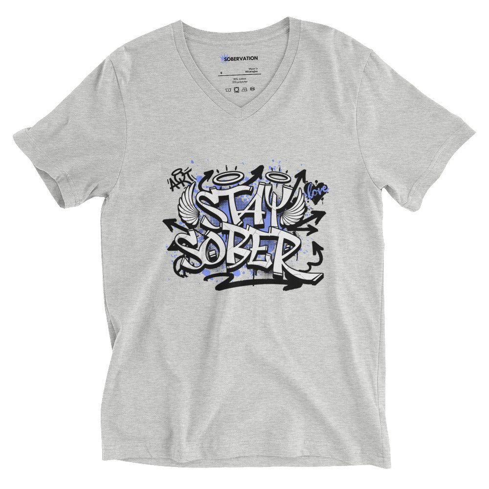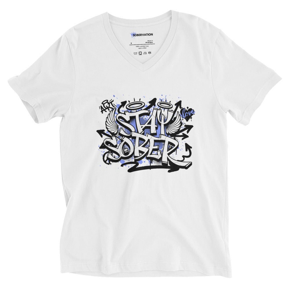 Stay Sober Graffiti V-Neck Tee – Street Style Meets Recovery Strength