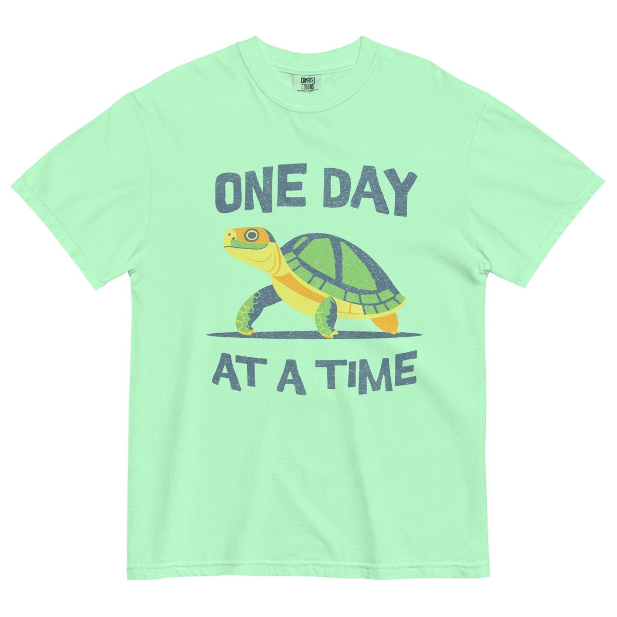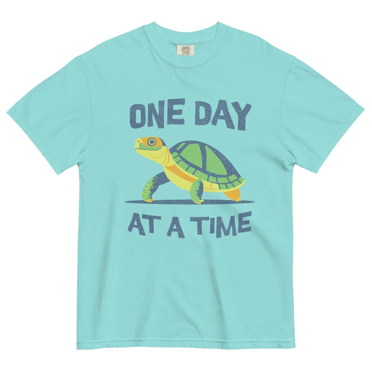 The Steady Journey Turtle Heavyweight Tee is for those who live their sobriety with patience, persistence, and zero apologies. Featuring a turtle design with "One Day at a Time" printed on the front, this premium Comfort Colors heavyweight tee is perfect for everyday wear while making a powerful statement that recovery is a marathon, not a sprint—slow and steady wins the race.