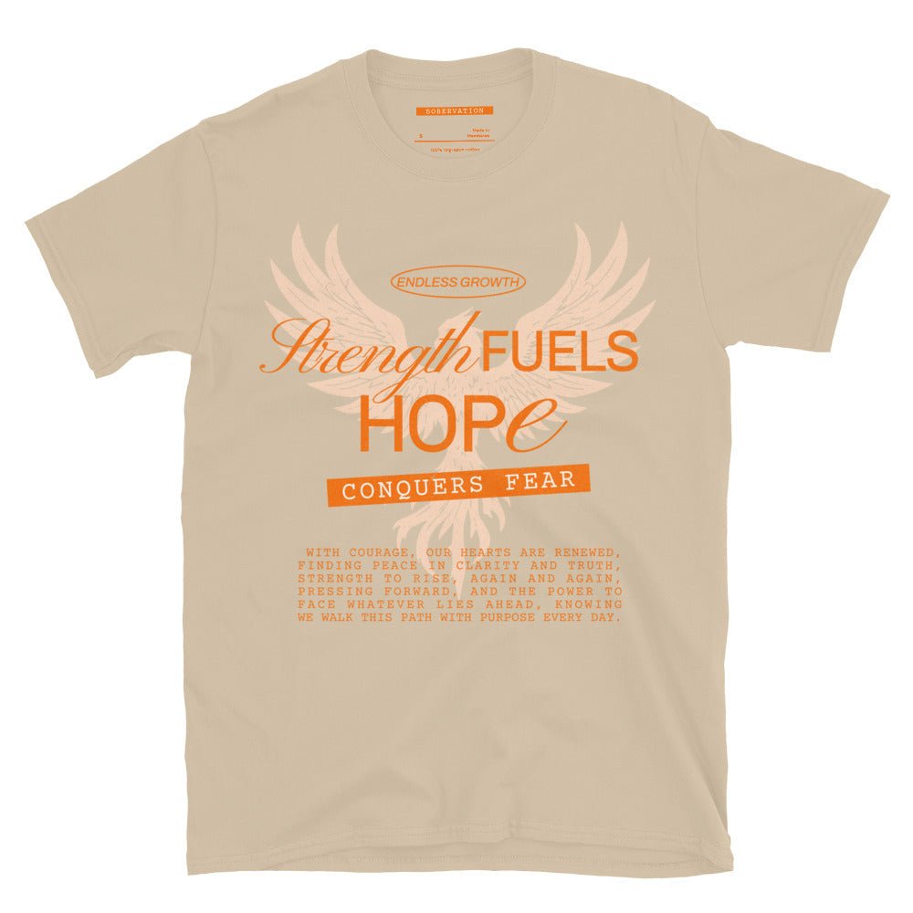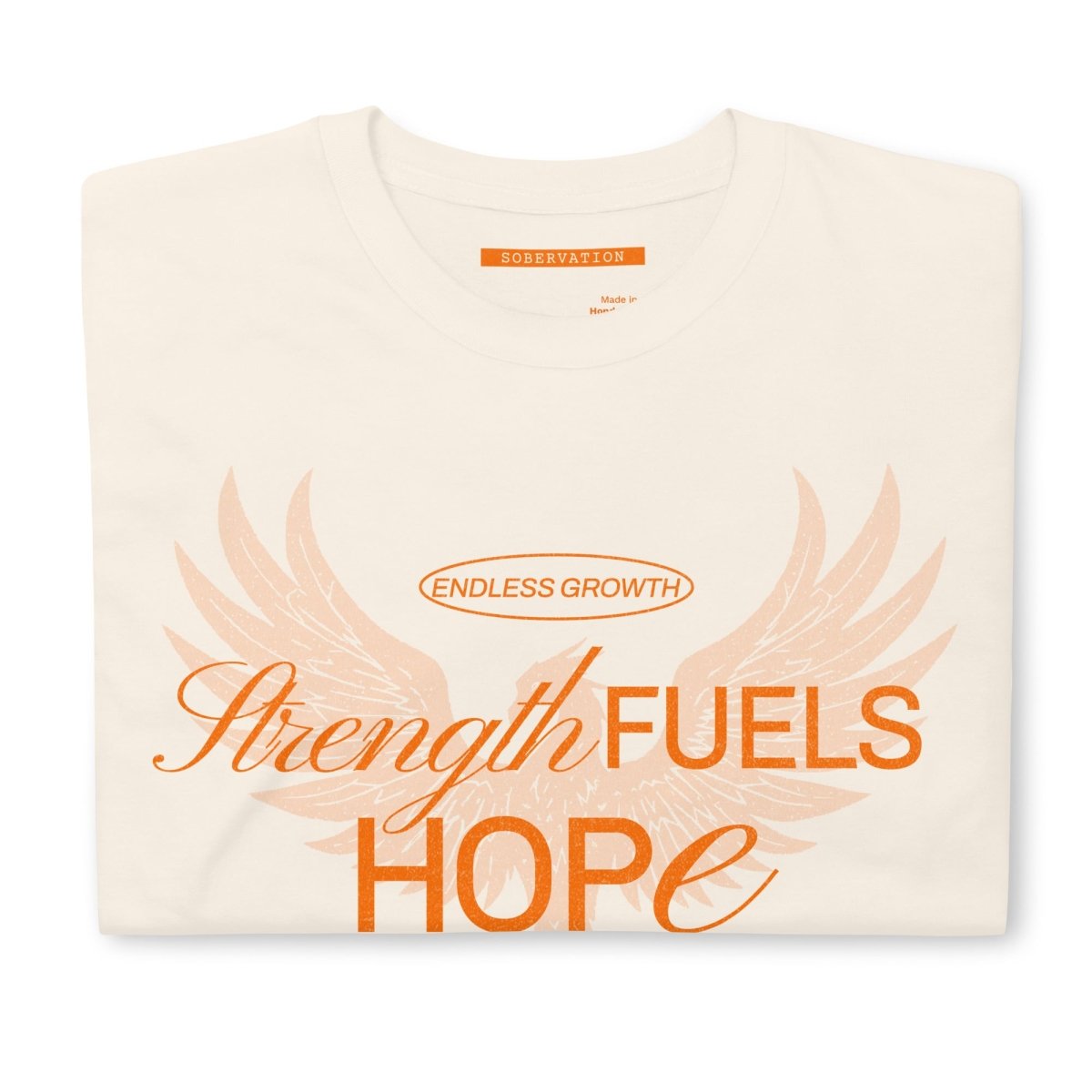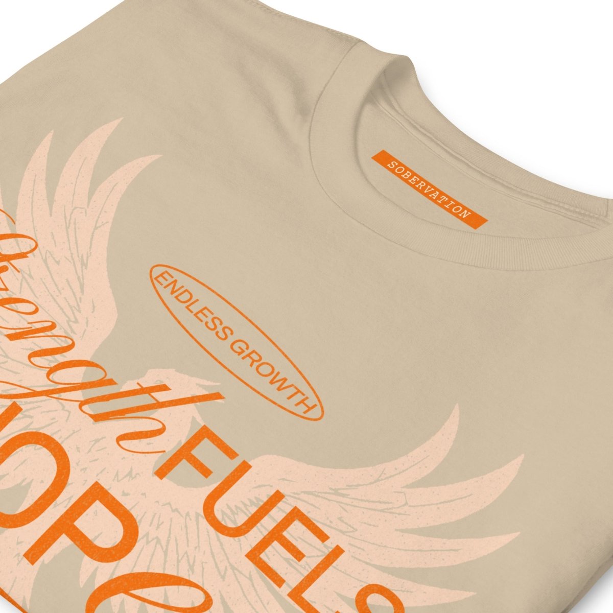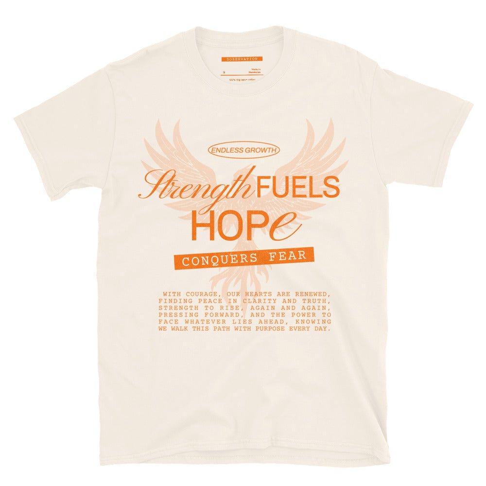 Strength Fuels Hope Conquers Fear – Phoenix Essential Tee - Natural Graphic Print T Shirt - Sobervation