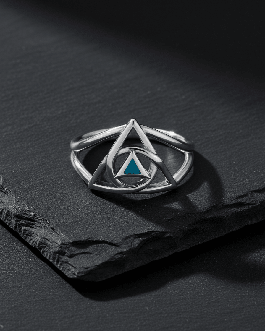 The trinity knot with the AA symbol and inlaid gemstone. Three powerful elements combined into one meaningful piece. The trinity knot represents the interconnectedness of mind, body, and spirit—the three elements you're healing in recovery. It also symbolizes the eternal nature of your commitment, with no beginning and no end, just like your sobriety journey. The AA symbol represents your program, your fellowship, your commitment to recovery. The inlaid gemstone adds beauty, permanence, and a touch of personal meaning—a reminder that recovery transforms you into something precious. The sterling silver construction ensures this ring lasts as long as your commitment to sobriety. This is more than jewelry—it's a wearable symbol of your transformation.