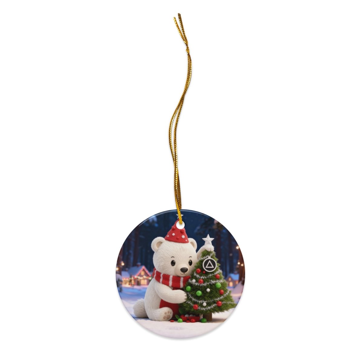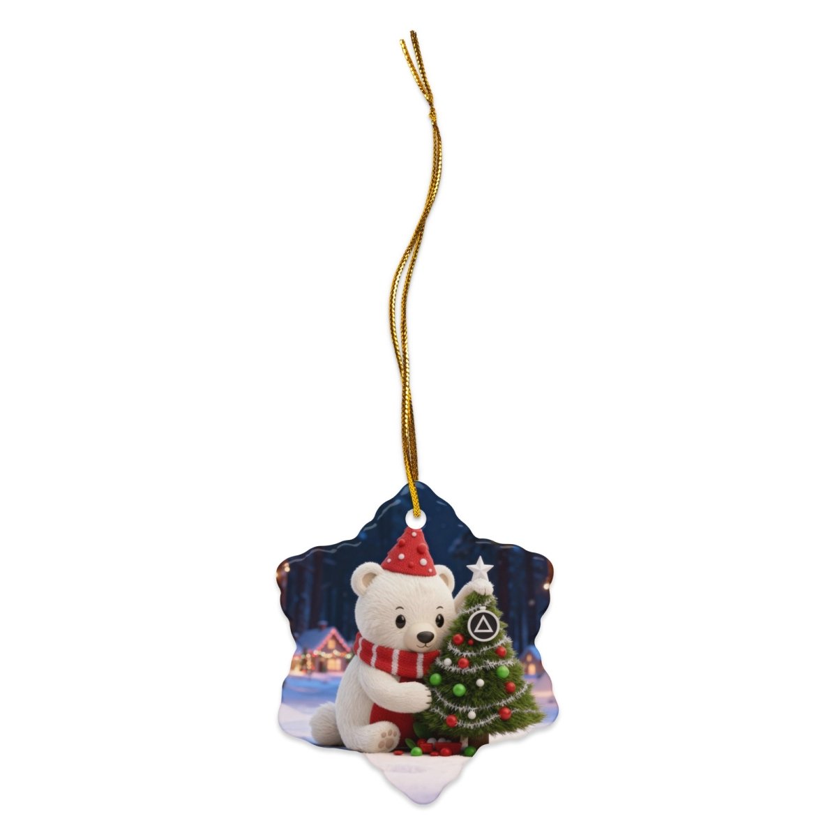 Celebrate the season of peace, love, and new beginnings with the Winter Serenity Bear Ornament. This heartwarming design features a cozy polar bear in a red scarf, lovingly decorating a Christmas tree crowned with a sobriety symbol star — a perfect reminder of growth and gratitude through recovery.